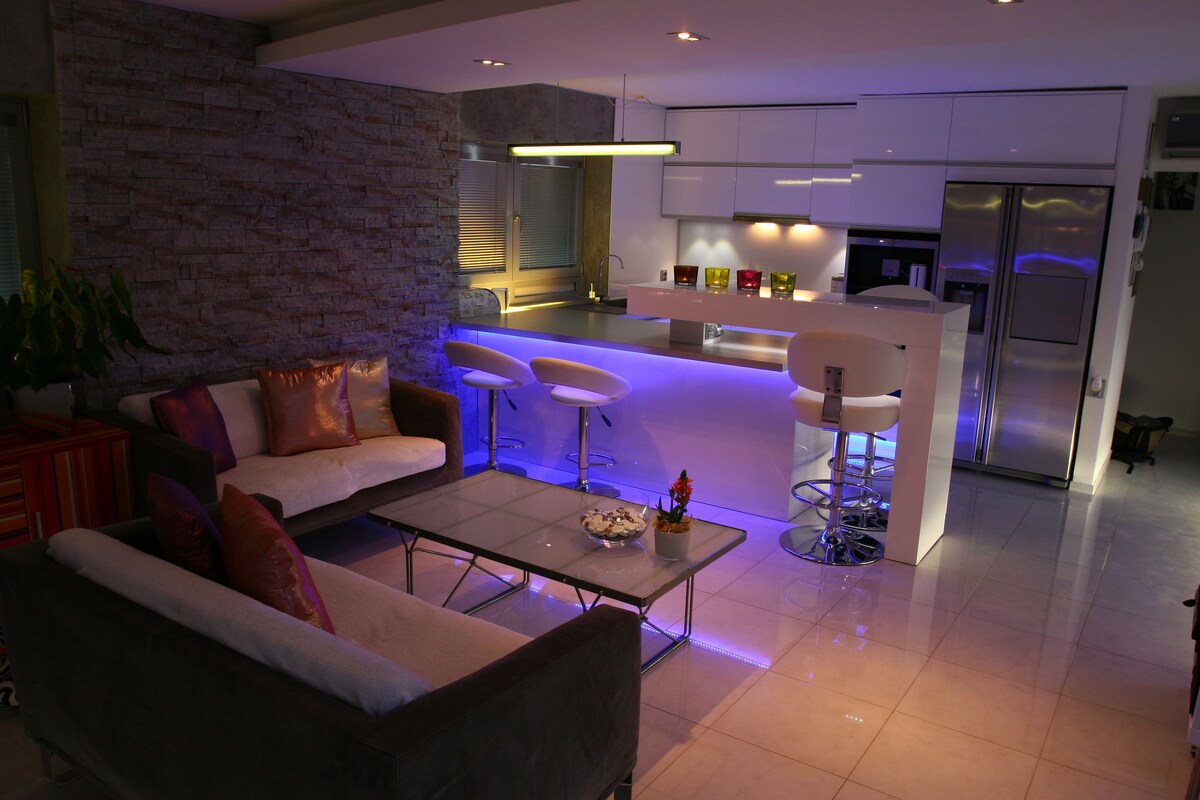 Luxuoso apartamento de 2 quartos no centro absoluto de Bratislava. Aqui está você no coração da Cidade Velha. O apartamento dispõe de uma sala de estar com uma cozinha totalmente equipada. Máquina de lavar louça disponível, máquina de lavar/ secar roupa, máquina de café, placa de indução, forno, frigorífico grande com máquina de gelo. O apartamento tem uma televisão, ar condicionado e Wi-Fi. Há uma banheira de canto na casa de banho. A atmosfera no apartamento é reforçada por várias zonas de luz ajustáveis. A partir do apartamento há um grande terraço partilhado.