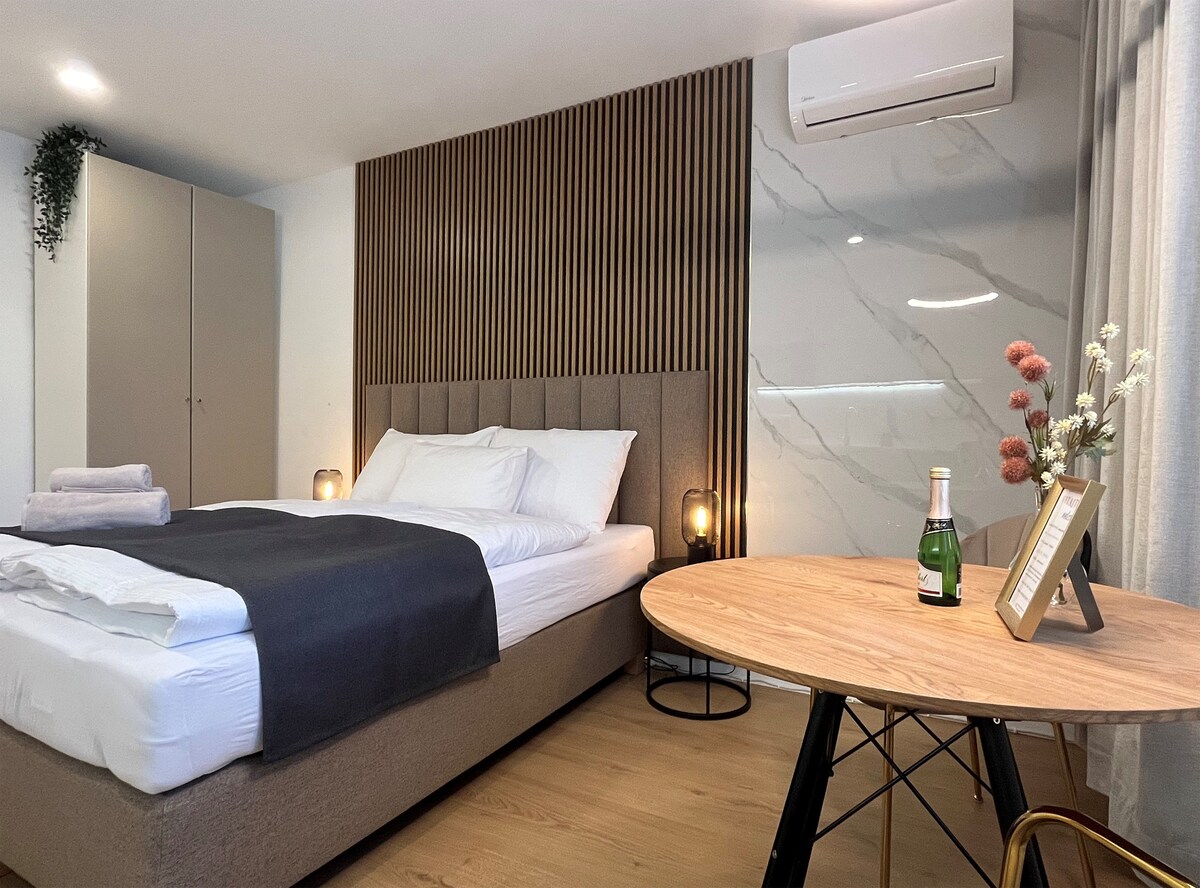 Enjoy a stylish experience at this centrally located place, suited for shorter travelling trips as well as for longer business trips. The apartment features a fully equipped kitchen, a queen size bed, a sofa and a balcony with a nice view to the quiet inner block of this newly built residential building. The apartment doesn’t have a parking spot available, but you can easily move around the city by walk, shared bikes or public transport as there are bus and tram stops closeby the apartment.