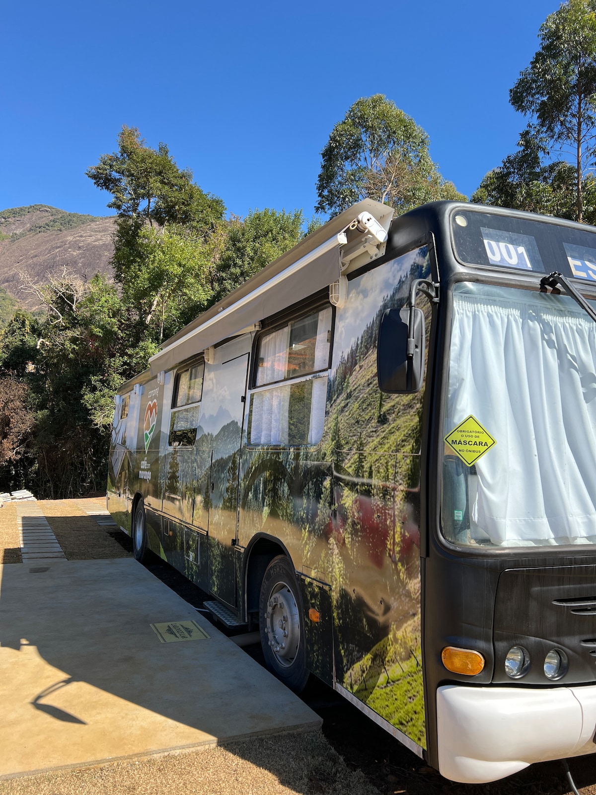 Este lugar extraordinário ficará gravado na memória. O Bus Experience te dará o maior aconchego e comodidade para viver essa experiência super exclusiva. O ônibus é equipado com o ar condicionado e aquecedor, afinal o controle de temperatura no meio da floresta nas Montanhas Capixabas, é importante! O ônibus fica em uma propriedade privada onde garante sua segurança, com a localização próxima ao centro da Cidade de Domginos Martins. Espaço externo para estacionamento.
