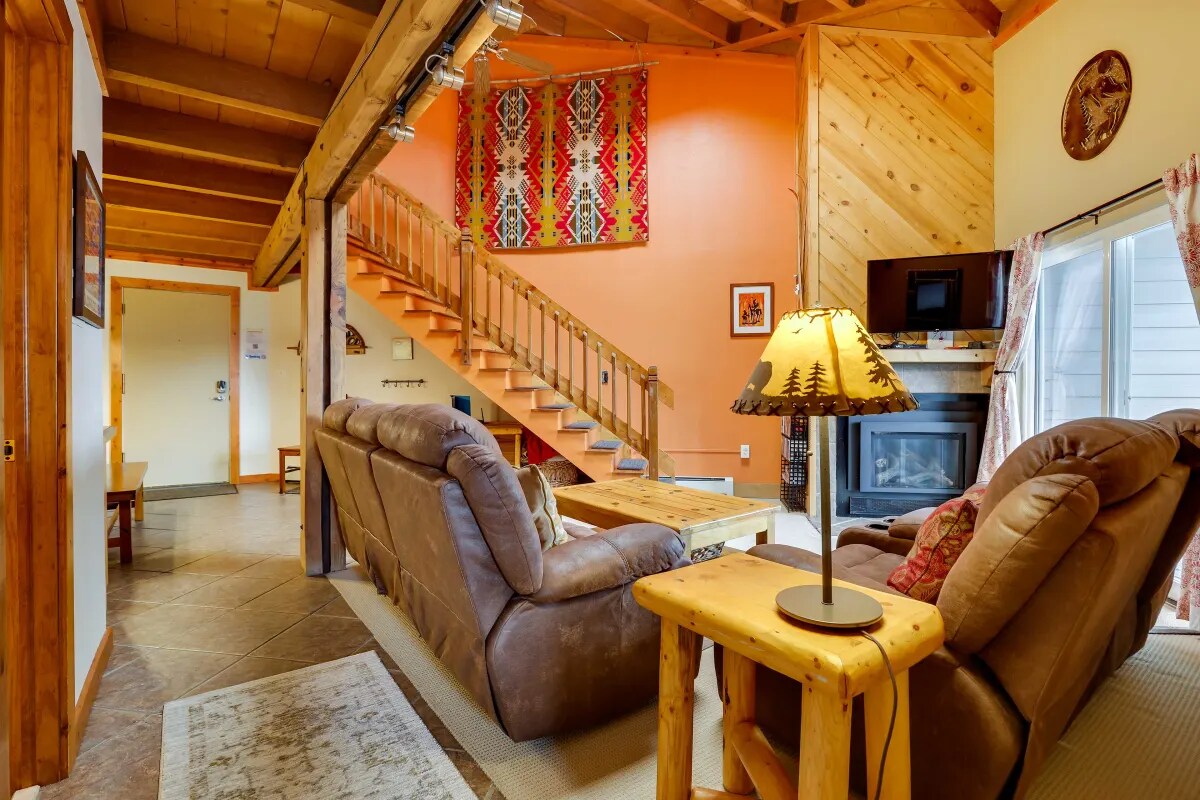 Condomínio aconchegante na montanha aninhado nas árvores e a apenas 1 parada de ônibus da base do Pico 8! Este apartamento limpo e aconchegante de duas camas tem uma planta aberta com um deck espaçoso, equipado com uma churrasqueira, com vista para pinheiros. Esta incrível localização do Pico 8 fica a 10 minutos a pé ou a 1 parada de ônibus da base do Pico 8 e a apenas 5 minutos de carro do coração da Main St. através do ônibus urbano gratuito e regular. Aproveite o fácil acesso à unidade com 1 vaga de estacionamento não atribuída.