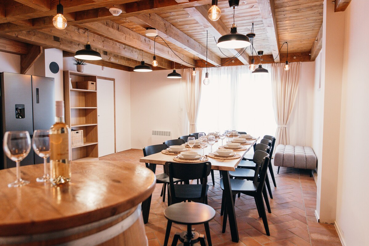 Este espaço único tem um estilo distinto. Um apartamento de experiência recém-inaugurado no coração da Morávia do Sul é um lugar perfeito para relaxar. Tem uma sauna finlandesa privada, banheira de hidromassagem, cozinha moderna totalmente equipada. Para os amantes do vinho, há uma loja de vinhos cheia de vinhos locais por uma taxa. Enquanto relaxa, também pode desfrutar de café moído fresco da torrefação próxima e chás ORGÂNICOS locais gratuitamente. O alojamento também tem uma propriedade vedada com uma área de estar e um churrasco.