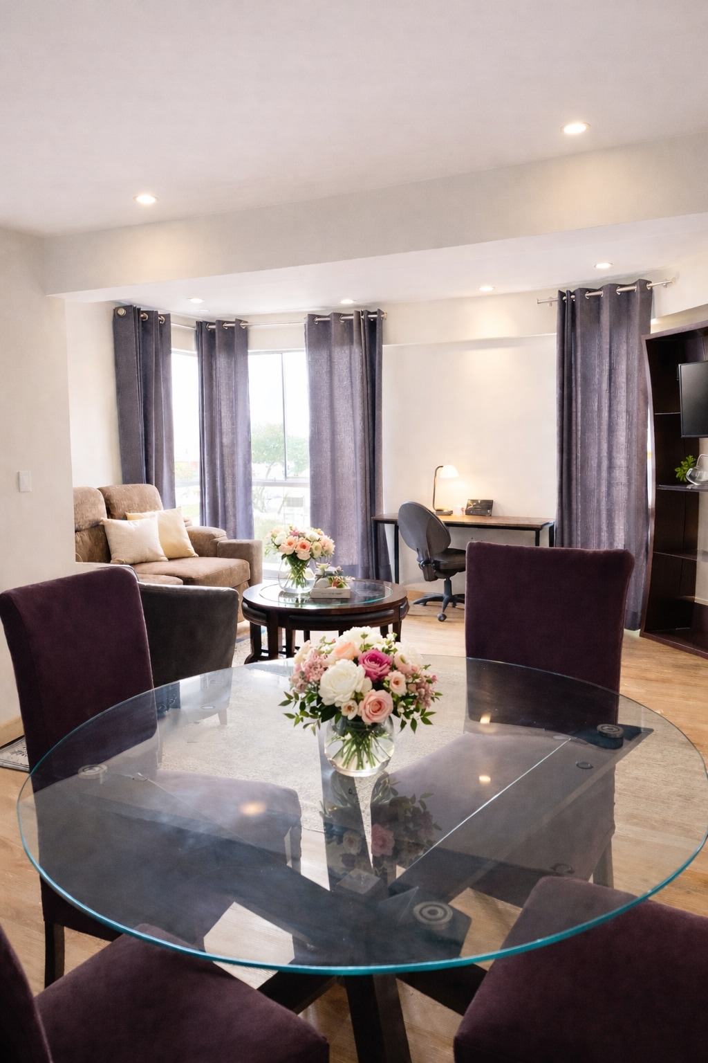 Modern apartment located right in front of El Polo shopping center and very close to the U.S. Embassy, in one of the best areas of Monterrico. Ideal for visa appointments, business trips or a calm stay in Lima. You will be within walking distance of shopping malls, cinemas, restaurants, cafés, shops and services. The building is modern and secure, with common areas, and offers optional parking and a portable A/C unit, both available at an additional cost.