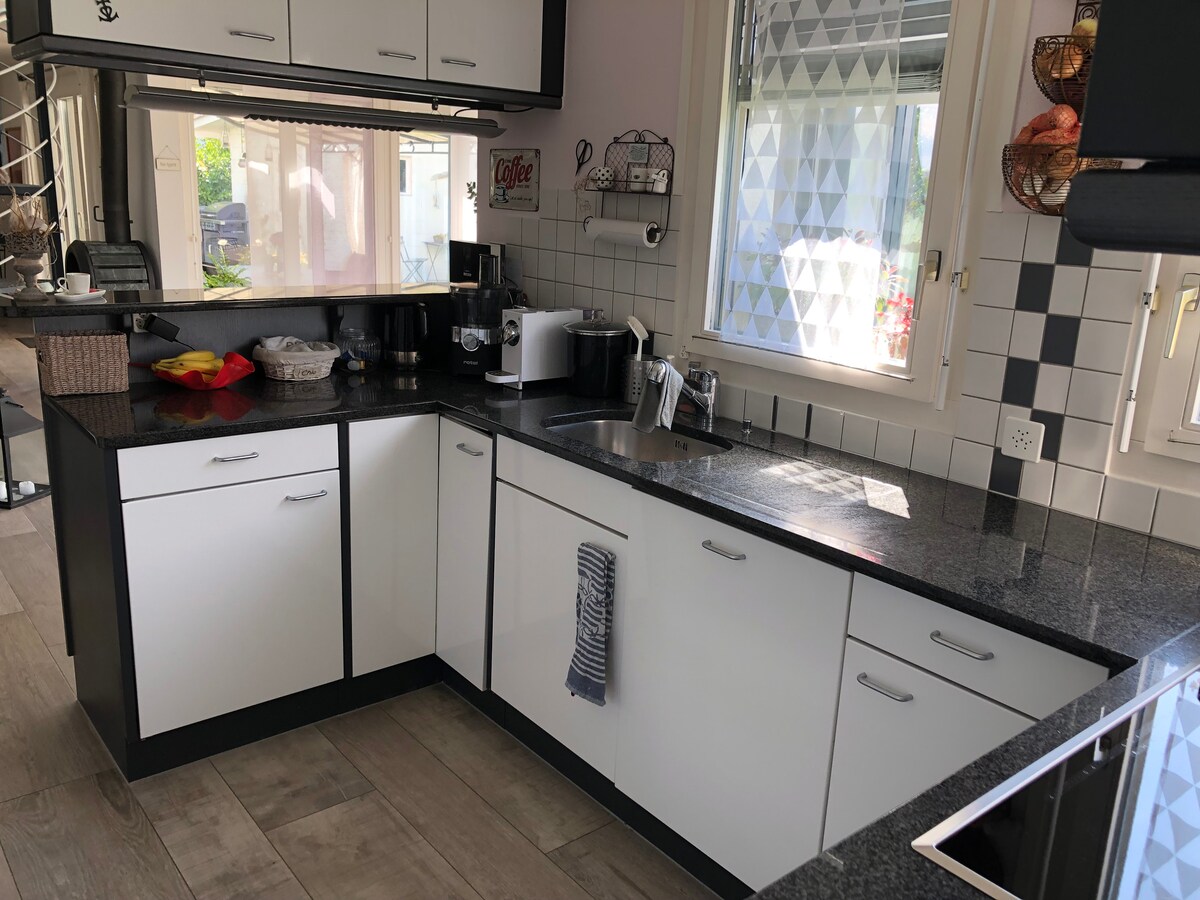 Estadia acolhedora no nosso estúdio de 20 m², perfeitamente localizado a 2 passos do lago. O espaço, concebido para o seu conforto, inclui: • Sala de estar conveniente com sofá-cama, mesa e kitchenette equipada • Área de dormir separada com cama de casal (140 x 200 cm). • Casa de banho com chuveiro e sanita. • Varanda-terrace de 9 m² com acesso ao jardim. Perto de: praia, porto e passeios pelo lago. Restaurantes e estacionamento gratuito nas proximidades, transportes públicos a uma curta distância a pé, lojas na aldeia.
