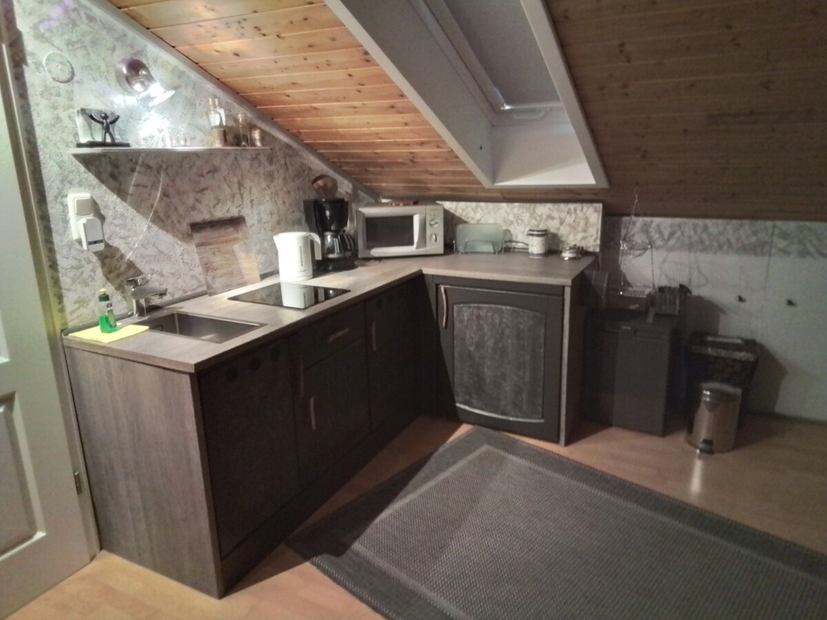O nosso alojamento acolhedor e mobilado individualmente é uma unidade residencial privada no andar superior com uma casa de banho privada - chuveiro/sanita, uma cozinha individual e um pequeno frigorífico silencioso (36 litros), que é usado apenas pelos nossos hóspedes. Em frente à pequena cozinha, a terceira opção de dormir está num nicho. Terá uma área de estar coberta à sua disposição no lado leste. O pequeno Biewer Yorkshire Pino da casa vizinha gosta de nos visitar diariamente.