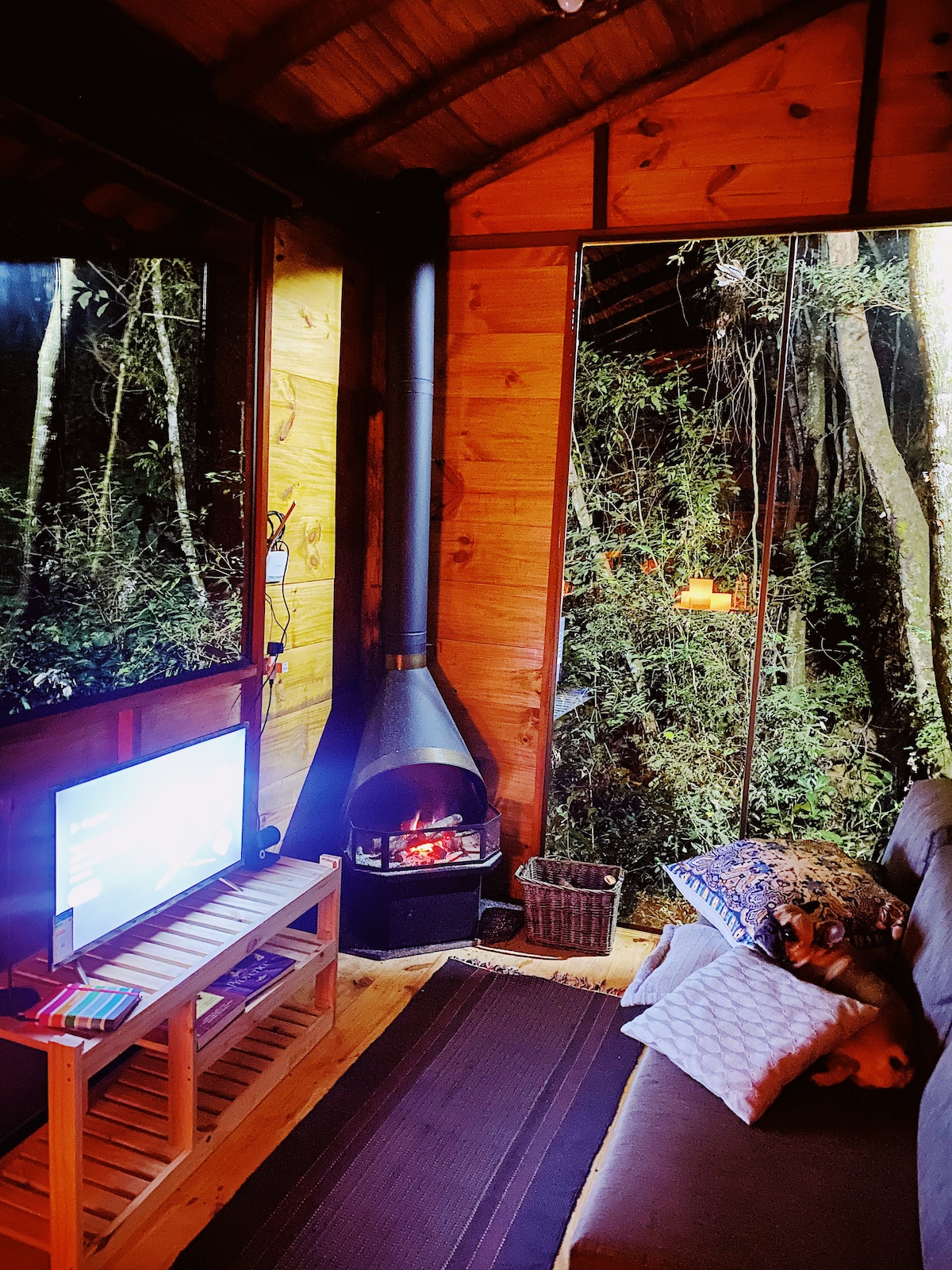 CAFÉ DA MANHÃ INCLUSO A Cabana Araras é um refúgio autêntico e exclusivo em meio à natureza, a apenas 5 km do Inhotim. Com arquitetura rústica sofisticada, lareira suspensa, ambientes acolhedores e vista para o verde, foi pensada para casais que valorizam silêncio, conforto e experiências reais. O café da manhã artesanal está incluso, servido com carinho para tornar sua estadia ainda mais especial. Temos opções de jantares românticos que podem ser contratados a parte.