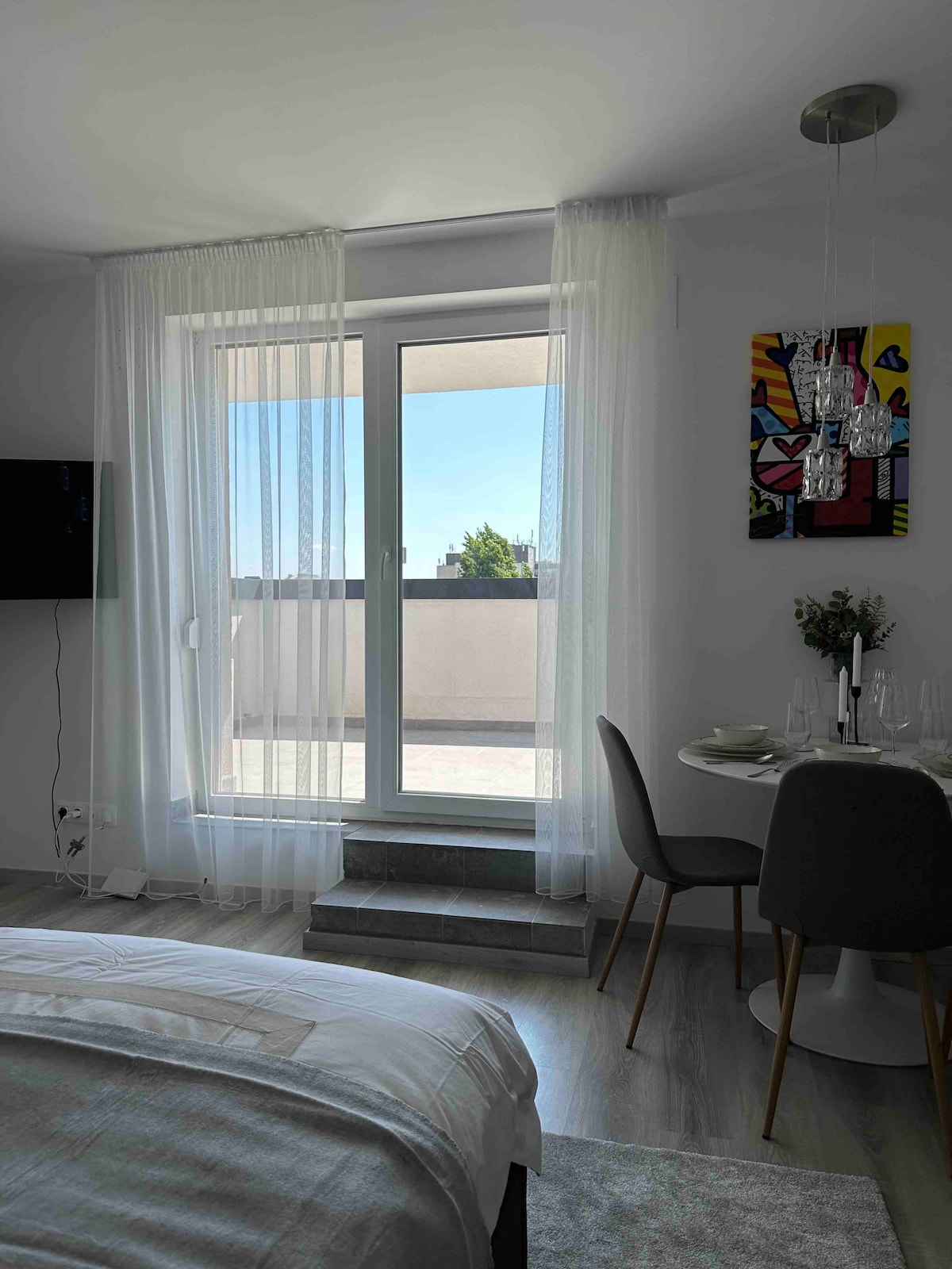 Novo estúdio no centro da cidade, na principal rua comercial, próximo ao cruzamento principal e ao Mercado Central. O Danúbio, restaurantes, cafés, lojas, metrô e bonde estão a poucos passos de distância. Temos 4 estúdios individuais lado a lado com cama king-size e sofá-cama, banheiro privativo, cozinha compacta, ar-condicionado, Wi-Fi, TV e Netflix. Área de convivência com cozinha totalmente equipada com forno, fogão de 4 bocas, lava-louças, máquina de lavar roupa e secadora.