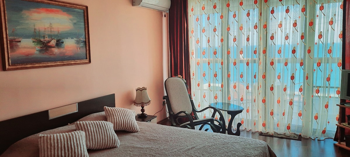 Apartamento acolhedor na ilha ensolarada de Chernomorets com excelente localização a poucos minutos do Camping Chernomorets e do centro da cidade. O apartamento oferece um quarto separado, uma sala de estar, uma casa de banho e uma varanda com vista incrível para o mar. A nossa casa “Sea sunrise view” é a maneira perfeita de desfrutar das suas férias com a sua família e amigos!