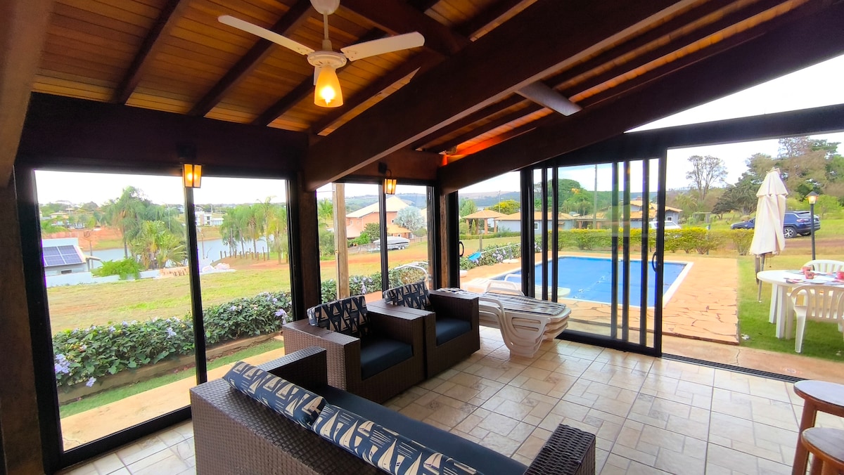 Casa totalmente completa, com mobílias incríveis, máquina de gelo, lava louça, som embutido em toda casa, inclusive no fogo de chão do piso superior, PISCINA AQUECIDA de borda infinita, canais de tv completos, inteira climatizada e muito mais. VISTA INCRÍVEL e apenas 80 metros das margens da represa. Todo luxo e conforto de uma casa altíssimo padrão. venha e desfrute de momentos incríveis com a sua família.