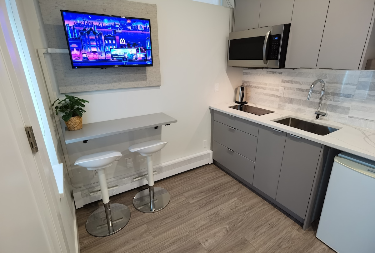 * Desconto de longa duração * *por favor, verifique a disponibilidade antes de fazer a reserva* *Estacionamento gratuito suficiente na rua* Oásis no centro da cidade, desfrute de conveniência e natureza. Estamos idealmente localizados num bairro seguro e conveniente, a 3 minutos de carro de Metropolis que têm estação de comboios Sky, muitas lojas,supermercados,restaurantes. Esta nova suíte renovada em meio porão , privada e acolhedora. Para reservas, forneça: Motivo da visita , Hora de chegada, O número de hóspedes. Obrigado :)