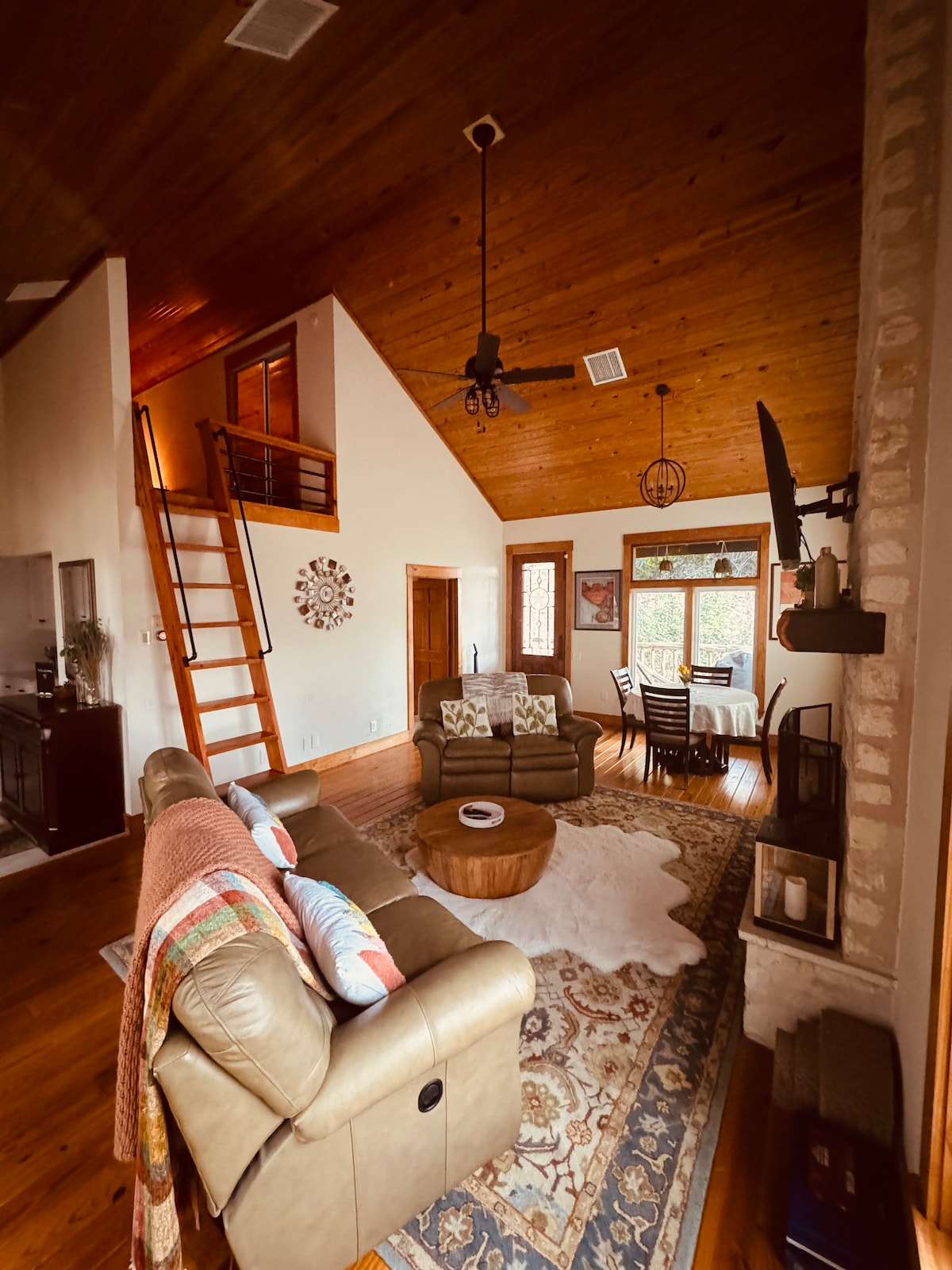 Esta propriedade coberta de árvores é vedada e fechada com estacionamento pavimentado. Relaxe junto à água do lago privado ou tente quebrar o disco de baixo do lago a 10,6 libras. Dê um mergulho na piscina antes de grelhar a sua refeição favorita. Esta casa de hóspedes privada está localizada no terreno da propriedade principal e fica a uma curta caminhada da rampa do barco no Lago Inks. Jogue ferraduras, lavadoras ou corn hole no relvado ou veja televisão a partir da piscina. Ensine as crianças a pescar ou simplesmente desfrute da vista do seu pátio privado.
