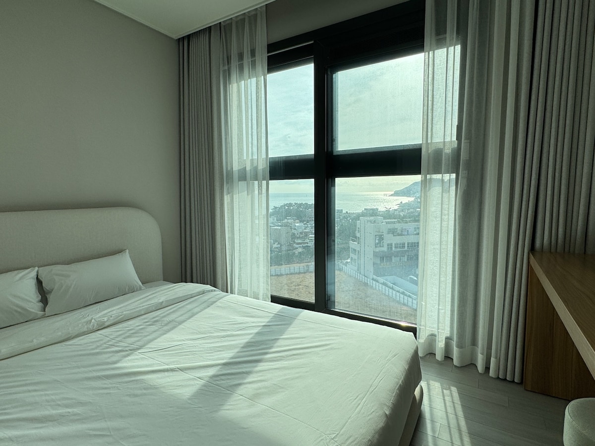 Cama queen size / Haeundae a 5 minutos a pé / Vista para o mar / Novo / 7 minutos de metro / Opção de piscina / Terraço / Passeio de iate