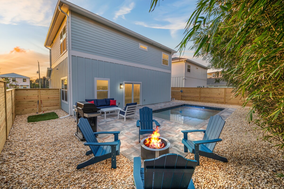 Welcome to Beach Bums Paradise, where sun-kissed days and relaxation await you. Nestled in only an 8-min walk from the sandy shores, this idyllic property seamlessly blends the best of both worlds: an exquisite private pool, private hot tub, fire pit and the enchanting allure of the beach, just three short blocks away. If you dream of a vacation filled with sun-soaked days, gentle ocean waves, and blissful poolside lounging, then look no further! New private fully fenced backyard!