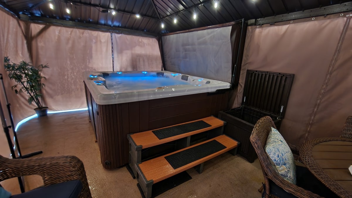 Bem-vindo à sua casa longe de casa. Criámos um espaço onde o conforto se encontra com a conveniência, para que se possa instalar, relaxar e desfrutar da sua estadia como se nunca tivesse saído de casa. O pátio está equipado com um sistema de som Bluetooth premium e mobiliário de exterior confortável, perfeito para desfrutar do seu café da manhã ou das bebidas à noite. Como bónus adicional, descontraia na nossa banheira de hidromassagem para cinco pessoas e desfrute de um ambiente relaxante que torna o exterior agradável em todas as estações.