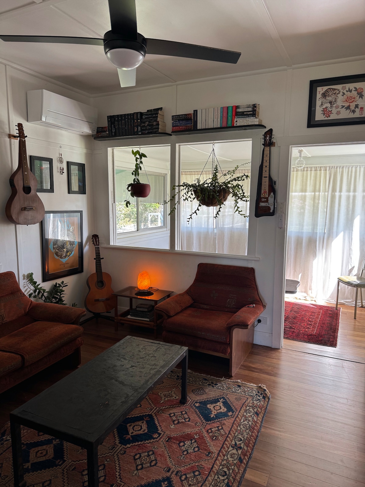 Espaço bonito e tranquilo com camas King e Queen super confortáveis nos 2 quartos, sofá-cama Qn de qualidade na sala de sol a pedido - roupa de cama de alta qualidade (e toalhas). A casa é leve, arejada, com uma vibe chique e fresca. Os quartos abrem para 2 pátios paisagísticos e uma 3ª área de jardim privada que proporciona um fluxo exterior interior sem esforço Novas renovações em todos os quartos, janelas, portas francesas, persianas e estores Praia a uma caminhada fácil. Aldeia local nas proximidades. A baía de Byron fica apenas a 5 km de distância. Check-in / check-out flexível, se puder.