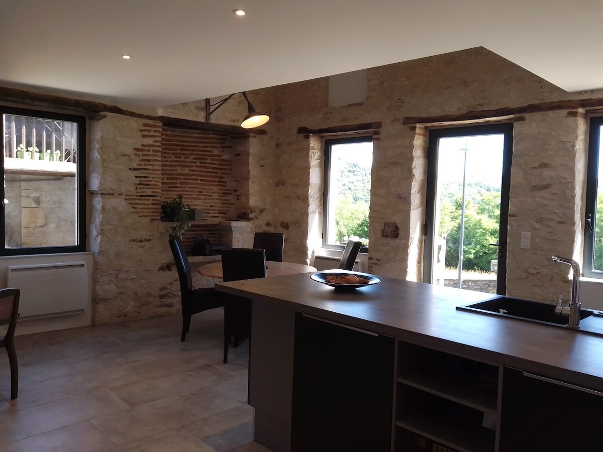 Ninho com vista para um mar de árvores. Antigo forno de pão transformado em uma casa luminosa protegida de olhares, com um pequeno pátio de inspiração japonesa na entrada, um jardim na parte de trás com vista para uma floresta, no coração de Quercy. Térreo em pedra, piso em madeira, fogão a lenha (essencial no inverno!), trilhas imediatamente acessíveis, muitas atividades culturais e esportivas na região. Ideal para os amantes da natureza, caminhadas, tranquilidade.