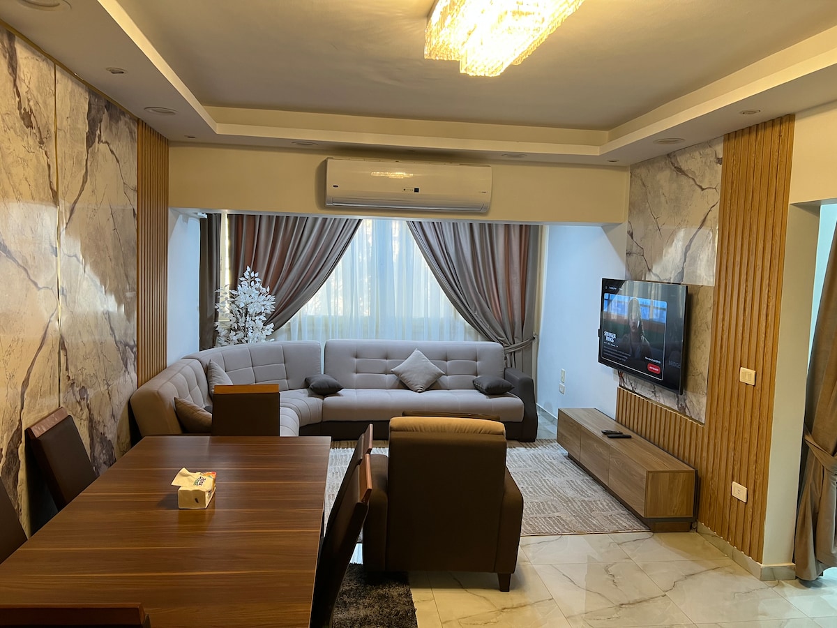 Esta acomodação está totalmente equipada com tudo o que você pode precisar, tudo é novo, excelente localização, perto do aeroporto do Cairo, perto de Heliopolis, perto de Nova Cairo, perto do maior shopping do Egito, City Center Elmazza O apartamento é novo, com iluminação nova e confortável, você vai gostar de ficar nele Muito seguro, há serviço Segurança 24 horas, colchões de alto nível de conforto, há ventilação, entrada de sol em todos os quartos, muito saudável