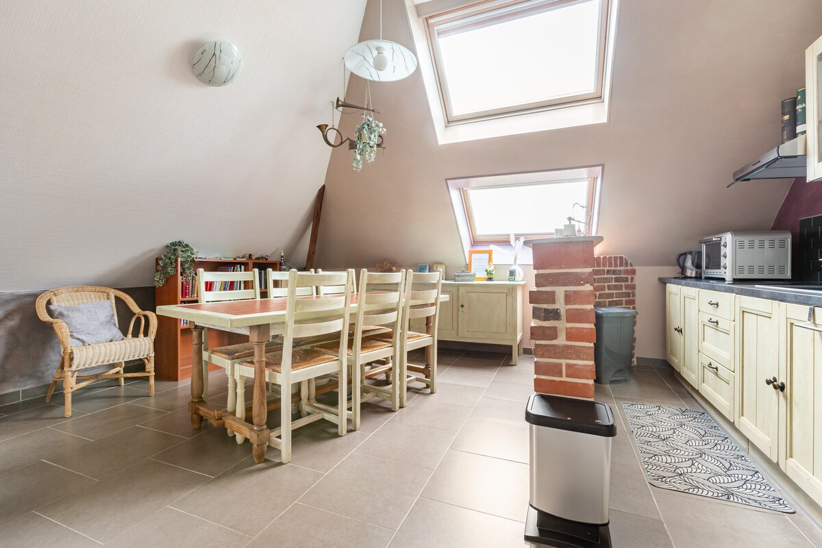 Nossa casa de campo está localizada em uma pequena vila ao pé das colinas de Artois, não muito longe de Saint Omer, Aire sur la Lys e Béthune e tem 2 quartos encantadores decorados com originalidade, todos equipados com banheiros privados e banheiros separados. Você também encontrará nesta casa de campo uma cozinha de jantar/estar/equipada, bem como uma cozinha de verão localizada no jardim no piso térreo. Um terraço coberto equipado com móveis de jardim também fica disponível para você.