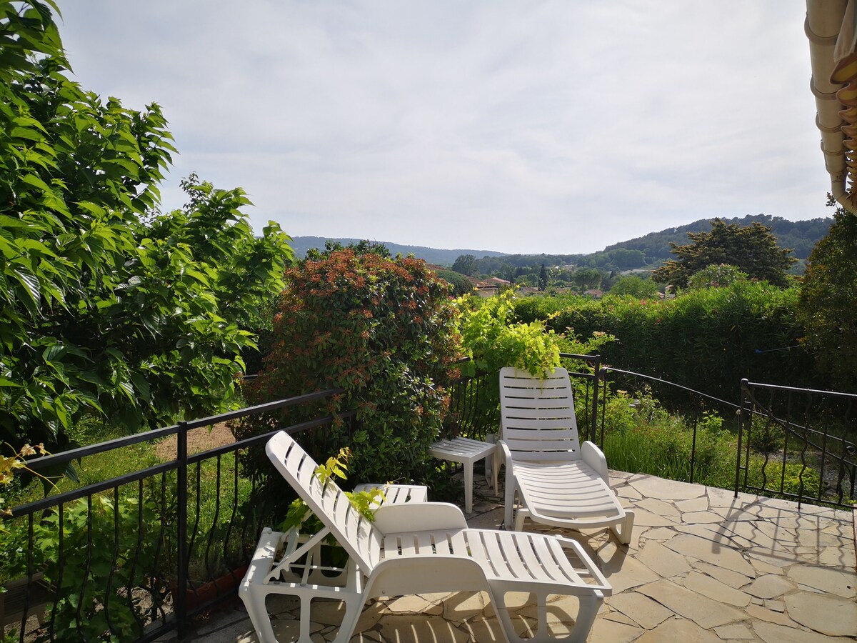 Localizado a 3 km da aldeia e no coração de um belo olival de 2 hectares, este agradável estúdio independente de 40 m2 tem uma exposição voltada para sul com uma vista magnífica e de 360° para os maciços do Esterel e dos Maures, até ao Mar Mediterrâneo; mudança de cenário e serenidade garantidas. Perto de trilhos para caminhadas, do Lago St Cassien, do rio, a 40 minutos do mar, CANNES, GRASSE, a 1 hora de NICE e de estâncias de esqui O seu animal de estimação é bem-vindo (menos de 5 kg)