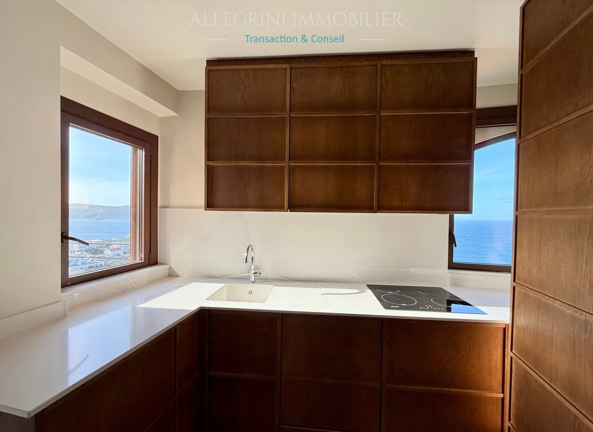 APARTAMENTO NOVO DE ALTO PADRÃO COM ACESSO DIRETO À PRAIA E VISTA EXCEPCIONAL DA BAÍA DE CALVI. O apartamento, com uma área de 69 m², totalmente climatizado, está localizado no último andar de uma residência à beira-mar. Possui um grande terraço de 23 m² com vista panorâmica O apartamento inclui uma sala de estar com cozinha americana, 1 quarto com uma cama de 160 cm com vista para o mar, 1 quarto com 2 camas de 90 cm e um banheiro com vaso sanitário separado.