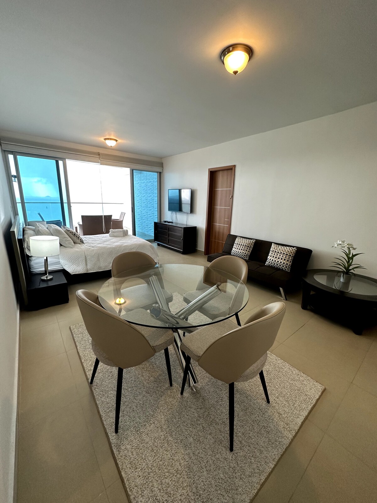 Este é um apartamento COMPLETO com 1 quarto grande separado, uma cozinha completa, área de jantar, área de estar e uma grande varanda em frente a duas piscinas e ao Oceano Pacífico. NAOS faz parte de um corredor marinho que liga 3 ilhas à Cidade do Panamá. Fica a 15 minutos da cidade histórica de "Casco Viejo" e a 25 minutos do Distrito Bancário do Panamá. O apartamento é bem feito - janelas do chão ao teto com vistas ESPETACULARES. Você verá todos os navios ou iates majestosos que transitam pelo Canal do Panamá.