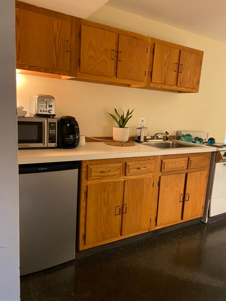 Charming studio on the garden level of a classic brick townhouse in Cambridge. Practically on campus: walk to Harvard yard (5 min) or MIT (15 min). Has a back porch for reading or enjoying fresh air. Well appointed with its own private bathroom w/tub, smart TV, and areas for seating, dining/studying, and a kitchenette with mini fridge, oven, microwave, toaster, espresso machine, and everything you might need for an enjoyable stay.