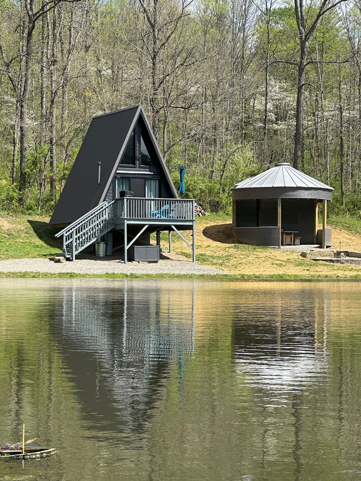 The Haven is just that - a place of rest. Keep it simple at this peaceful and centrally-located place. The cabin is nestled in a wooded area with a pond view and rolling hills. In the heart of beautiful Amish country we are just minutes away from popular attractions. The living area includes a full kitchen, washer and dryer, and comfortable furniture to enjoy a smart tv and fireplace. A King bed and full bath on the main floor. The loft has a queen bed. We welcome you to come stay with us!