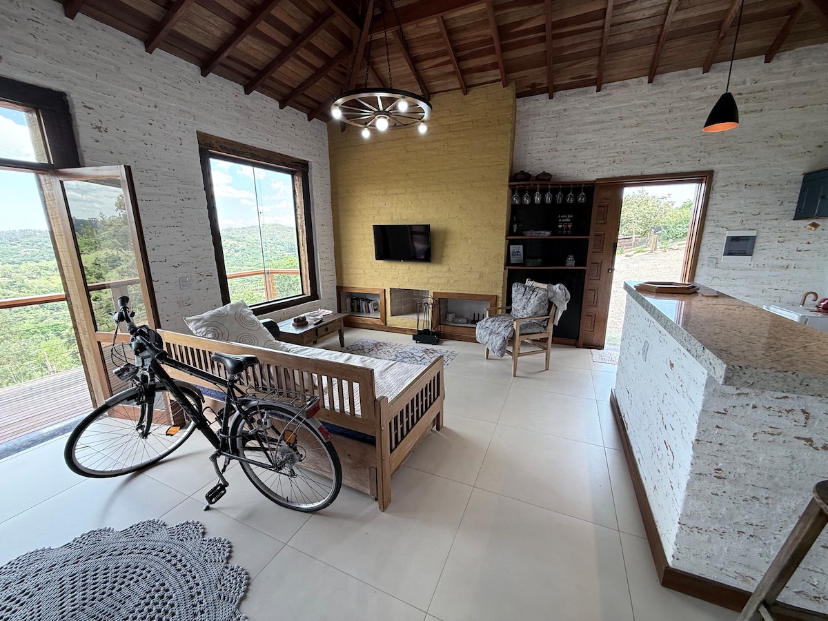 Reconecte-se à natureza neste lugar inesquecível. Casa totalmente construída com material antigo de demolição, muita madeira, muito vidro, muitos pássaros e muita natureza. Aqui você passará dias de sossego, descanso e terá possibilidade de fazer caminhadas e curtir o por do sol em nosso mirante.