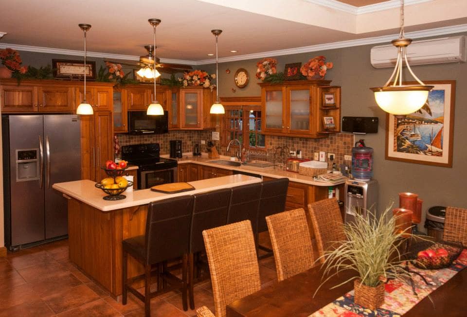 Embora esta deslumbrante moradia, com a sua bela piscina, tenha capacidade para 10 pessoas, o preço indicado é para 6 pessoas. Cada hóspede adicional custa 25 $ por noite. Se a sua família for maior do que isto, não hesite em perguntar sobre a reserva do chalé adjacente de um quarto por mais 100 $ por noite. Enquanto os quartos têm ar condicionado, as principais áreas de estar - sala de estar/jantar, varanda e cozinha - da moradia são arrefecidas por ventiladores de teto e brisas da ilha que passam pelas janelas e portas abertas.