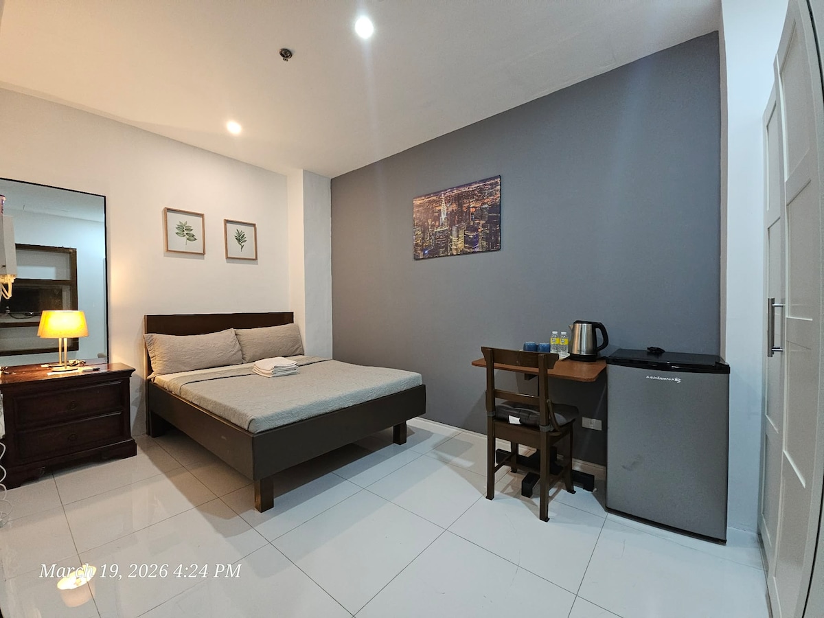 Hometel moderno na cidade de Naga – Quarto privado ⚠️ IMPORTANTE: este anúncio é apenas para UM QUARTO PRIVADO (não para todo o edifício). Temos 8 quartos privados no total. O preço mostrado é por quarto, por noite. A uma curta distância a pé de: Naga College Foundation, Camarines Sur National High School, BISCAST, Naga Central School Perto de restaurantes, cafés, pontos turísticos importantes e estradas principais com fácil acesso ao centro da cidade. Desfrute de uma localização limpa, segura e estratégica — conveniente durante o dia, acolhedora à noite.