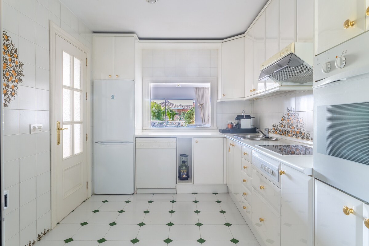 Charming House in Bel Air Estepona. Walking distance to the beach and 5min from puerto Banus, 4 min to San Pedro, 10 min to Estepona and Marbella. 2 en Suite Bedrooms with each his Bathroom. Charming Garden to Relax in the Jacuzzi. Very nice community garden with 2 secured Pools. Fully equiped: Washmachine, Dryer, Dishwasher, 2 Smart TV's, Sonos Sound System, Wifi etc.... 4 Golf courses in less than 5 min driving. (Atalaya Golf, El Paraiso, Los Flamingos, Guadalmina)