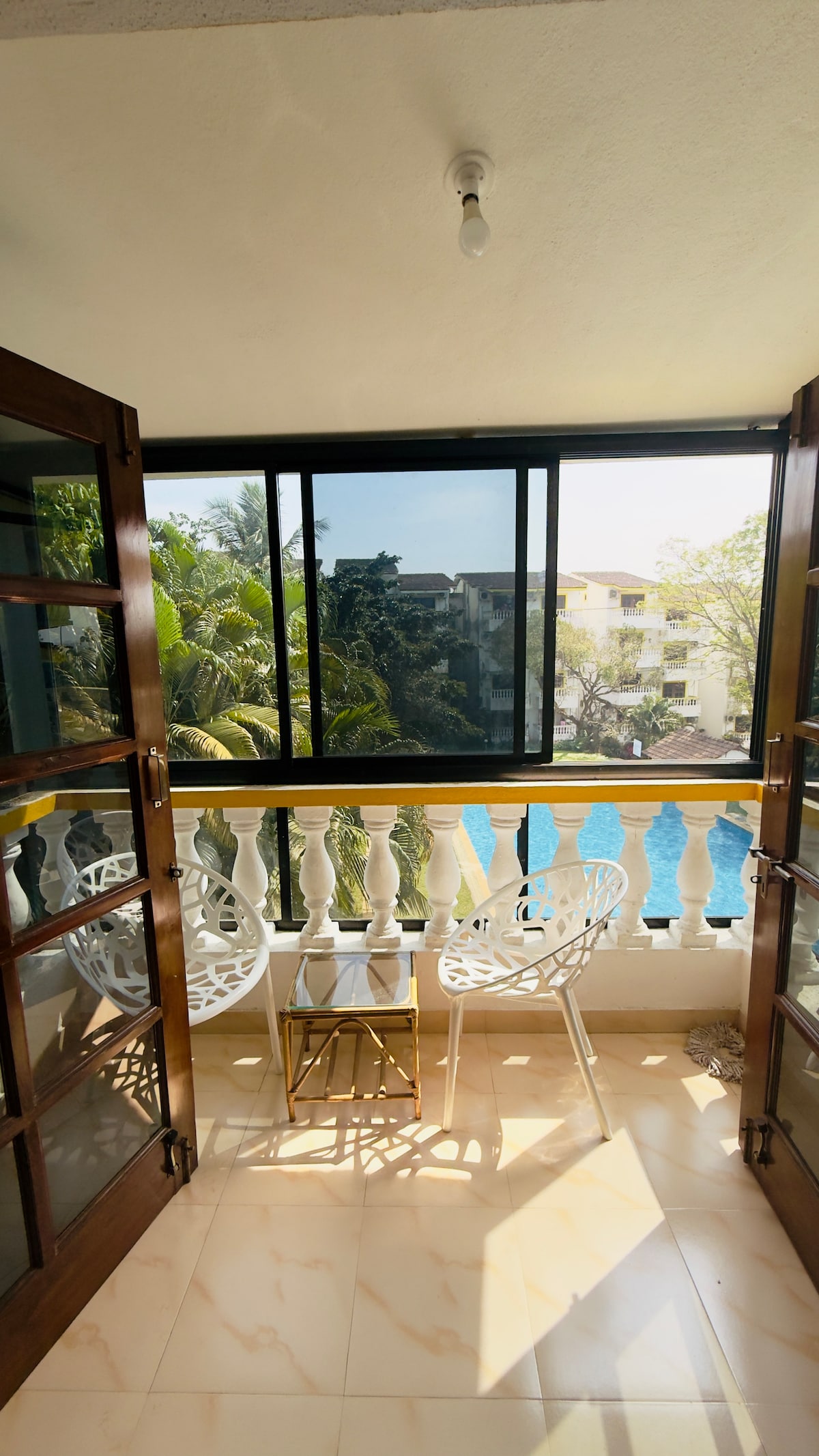 Apartamento 1BHK com vista tropical em Candolim Desfrute de uma escapadela relaxante em Goa neste apartamento luminoso e luxuoso de 1 quarto com uma varanda com vista para a paisagem tropical e para o exuberante pátio verde. O espaço foi concebido para proporcionar conforto, estilo e conveniência, sendo perfeito para casais, famílias, amigos ou viajantes individuais. O que vai adorar: Quarto sofisticado Área de estar acolhedora Área de jantar espaçosa Cozinha totalmente equipada. Casa de banho espaçosa. Acesso à piscina, GINÁSIO e centro de ioga, mesa de bilhar. Estacionamento reservado