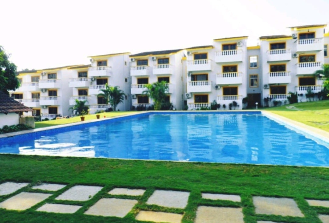Apartamento 1BHK com vista tropical em Candolim Desfrute de uma escapadela relaxante em Goa neste apartamento luminoso e luxuoso de 1 quarto com uma varanda com vista para a paisagem tropical e para o exuberante pátio verde. O espaço foi concebido para proporcionar conforto, estilo e conveniência, sendo perfeito para casais, famílias, amigos ou viajantes individuais. O que vai adorar: Quarto sofisticado Área de estar acolhedora Área de jantar espaçosa Cozinha totalmente equipada. Casa de banho espaçosa. Acesso à piscina, GINÁSIO e centro de ioga, mesa de bilhar. Estacionamento reservado