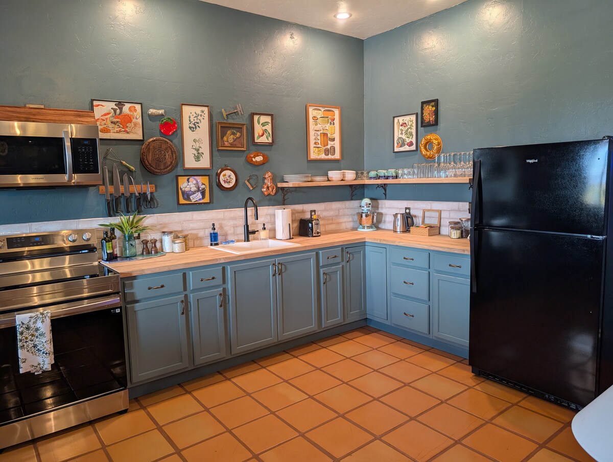Welcome to our southwestern style ranch home in Sonoita/Elgin, Arizona wine country! Our home is 2,600 square feet and sits on 40 acres with unobstructed views of the beautiful Santa Rita Mountains. Our entire home is available for a wine country getaway. With three bedrooms, two full bathrooms with dual vanities, a half bath, an amazing kitchen, dining, two living spaces, and high-speed Internet, our home is ideal for two or three couples, or a family getaway (crib available for use).