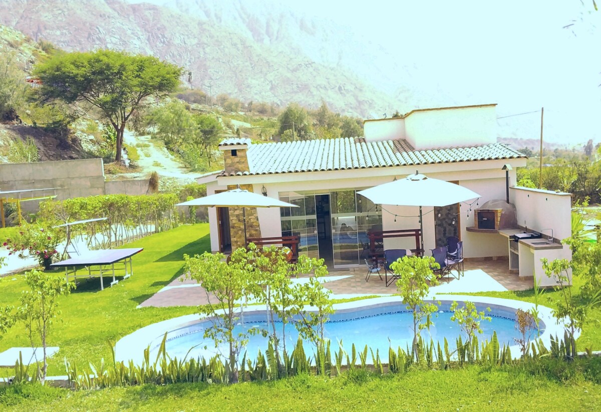 Casa de campo al costado del rio Chillón, a 10 min de Santa Rosa de Quieves, en Lima; con huerto orgánico, piscina, cancha de fulbito, juegos para niños, sala de estar, bar, fogata, cocina campestre y hermosos paisajes. A sólo 2 horas de Lima, una escapada inolvidable.