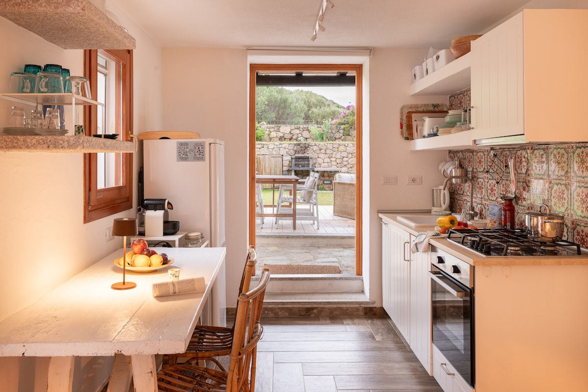 Casa minúscula situada em Porto Pollo “paraíso do kite e windsurf”. É um estúdio totalmente equipado. Perfeito para casais ou famílias pequenas, há uma cama queen size e um sofá-cama. Do pátio coberto você pode assistir a uma baía e um vale. A cozinha está totalmente equipada (micro-ondas, cafeteira e chaleira). Um segundo chuveiro está situado no pátio. Wi-Fi, TV, máquina de lavar roupa, ar condicionado estão incluídos. Além disso, há um estacionamento privativo. Fica a 5 km de Palau e a 35 km de Olbia.