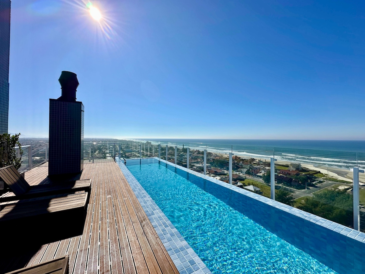 Apartamento excelente com todos móveis novos, mobiliado e climatizado em todos ambientes. Com pôr do sol incrível. Com terraço no último andar, podendo usufruir e aproveitar toda infra estrutura do prédio. Apenas 3 quadras da praia em um dos bairros mais nobres da cidade.