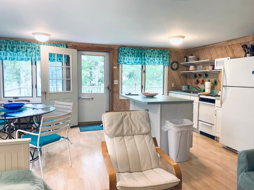 Couple/family fun all year in a charming, private Cape Cod cottage w/ screened in porch, patio & outdoor shower (in Nov/Dec/Jan becomes a Gingerbread cottage). Inside: open living space w/ queen bed & sitting space. Ladder leads to a short height sleeping loft w/ 2 twin beds. Full bathroom w/ indoor shower. Kitchenette- see description below. We supply tea, local coffee, spices, condiments, gas grill, ice chests, beach towels & chairs. To sleep up to 8, also rent our Upper Room on Airbnb.