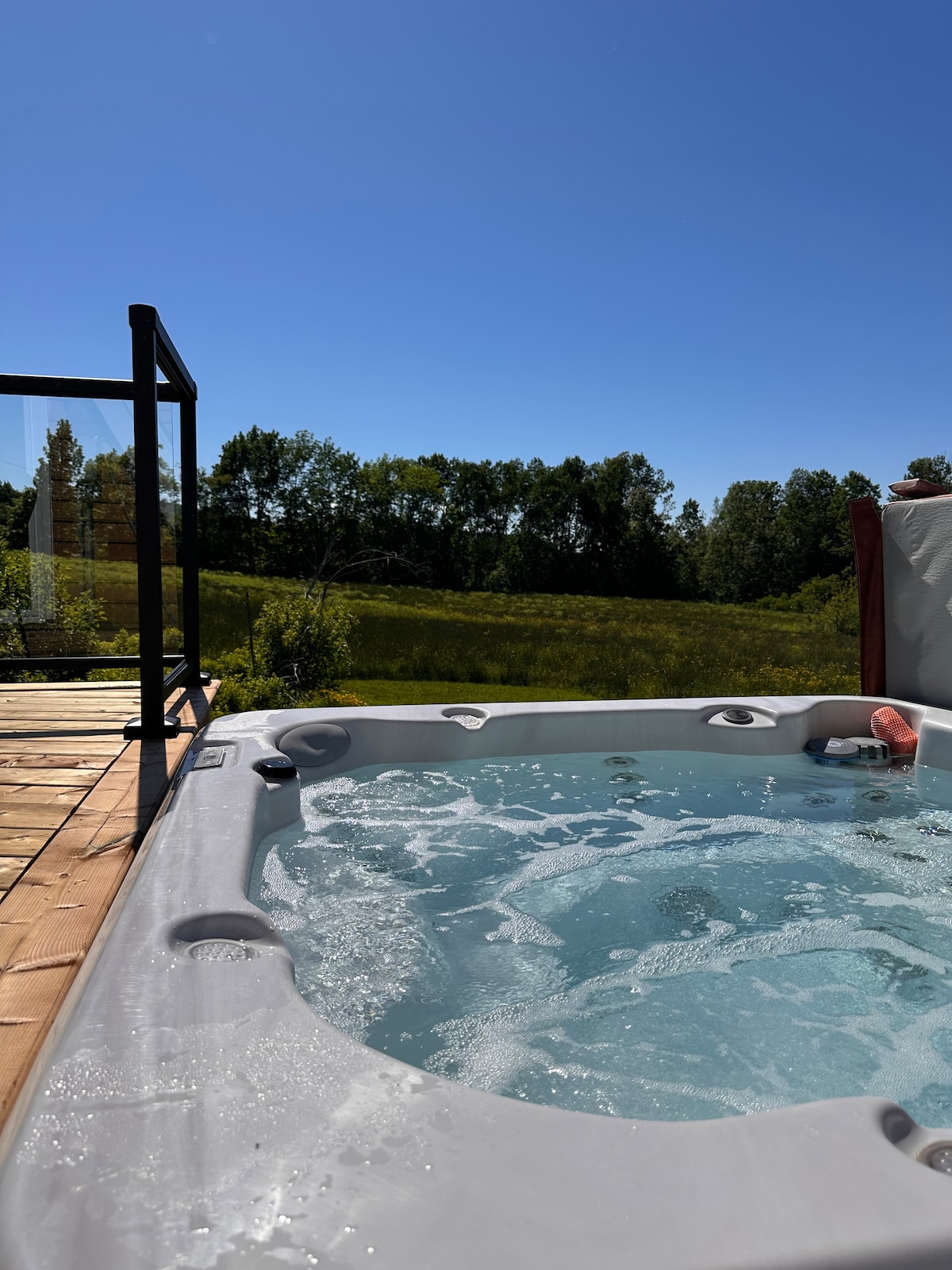 Welcome to Jolicure Cove! Located just 10 minutes from the Aulac Big Stop. Prepare yourself for a total nature immersion in our private lake front dome. You can expect complete peace and quiet except the sounds of the breeze, the loons and other forest animals. The dome is the only one on the property, which sits on over 40 acres! Enjoy yourself playing games on the lawn, sitting around a fire at the fire pit, or reading out on the dock.