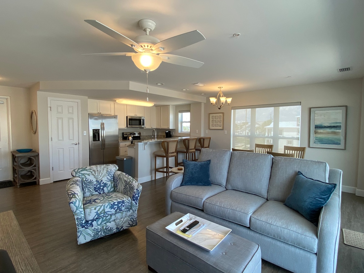 Relaxe e descontraia neste apartamento único e tranquilo em frente ao canal, a apenas um quarteirão da deslumbrante praia de areia branca. O estacionamento público e conveniente da praia está localizado do outro lado da rua, permitindo-lhe conduzir até à areia. Também encontrará uma máquina de venda de gelo e aluguer de carrinhos de golfe nas proximidades para maior comodidade. Este apartamento no segundo andar oferece fácil acesso a uma piscina, banheira de hidromassagem e elevador, garantindo uma estadia confortável e agradável.