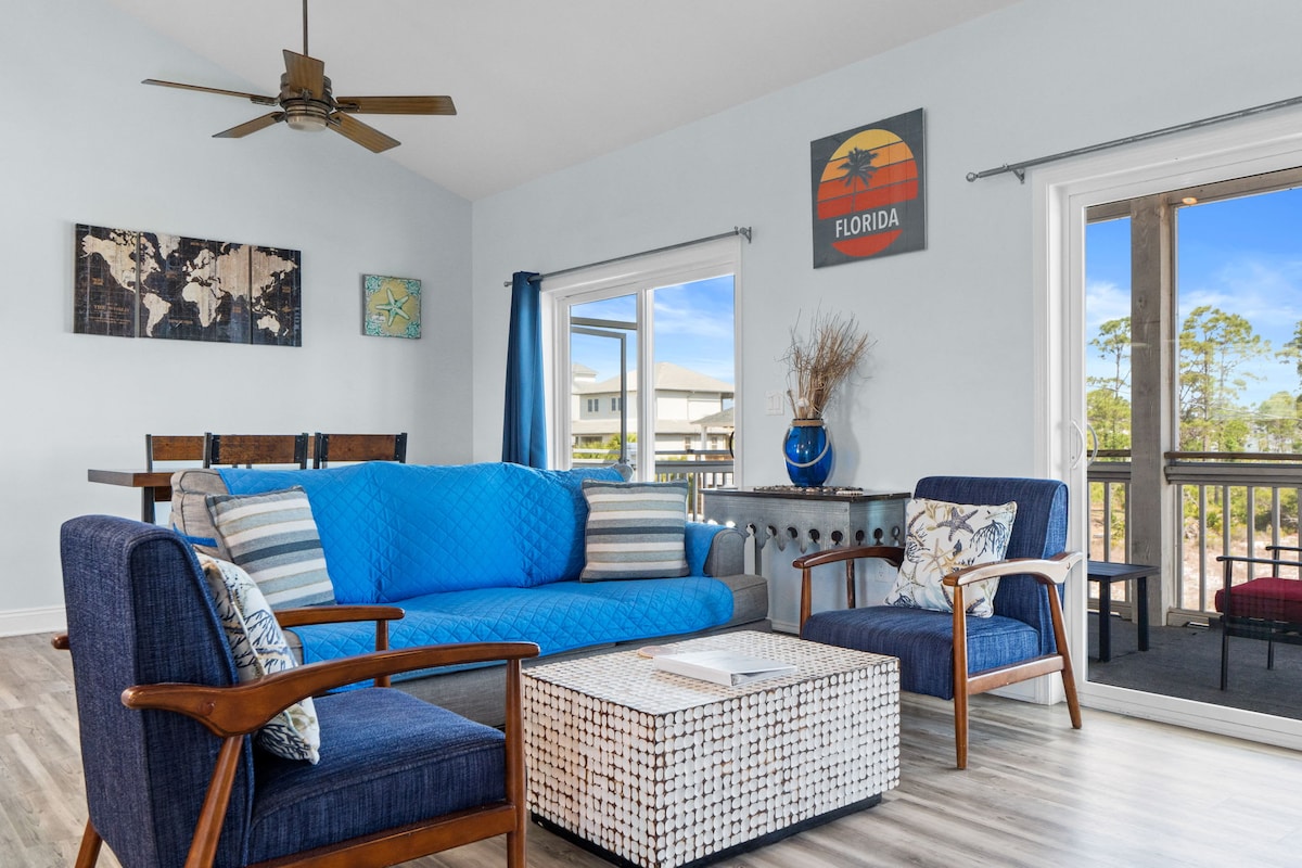 -Cape San Blas - Construção nova em folha em Villa Del Sol, ao lado do golfo - Calçadão comunitário até a praia (5 minutos a pé até a areia) - Piscina comunitária -Duas quadras comunitárias de pickleball - Pátio com vista parcial do golfo e da baía -Planta de piso aberto - Lindamente decorado -Cozinha abastecida -Internet de alta velocidade com Wi-Fi - TVs Roku (traga suas próprias senhas) - Carrinho com cadeiras de praia, guarda-sol e toalhas - Churrasqueira a carvão Weber OBSERVAÇÃO: Como Villa Del Sol é uma nova comunidade, há alguma construção no bairro.