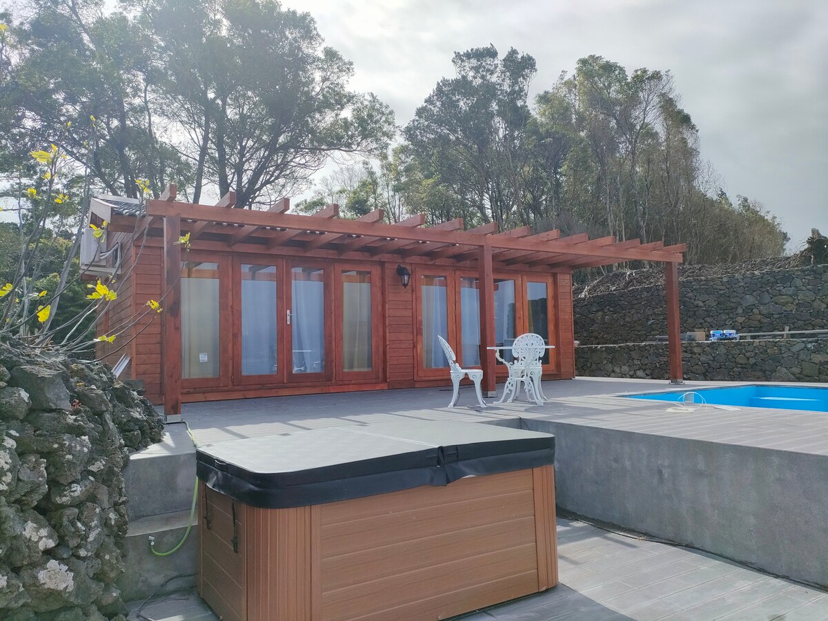 Relax ao som da natureza, neste espaço calmo e elegante, desfrutando de banho de piscina, jacuzzi e sauna numa quinta com vista paradisíaca sobre a Vila da Madalena, o mar e a Ilha do Faial e beneficie dos passeios pedestres com uma vista para a montanha do Pico. As nossas acomodações situam - se a 2 minutos de carro e 20 minutos a pé da Vila da Madalena, incluem um quarto com cama de casal e uma sala que dispõe de sofá cama. Pode usufruir de uma sauna e de um firepite.