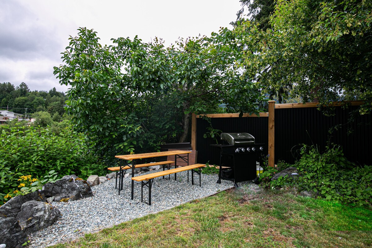 MayneWave é uma cabana de madeira histórica à beira-mar (1900), na Ilha Mayne, nomeada por sua proximidade com a água. Ondas na praia e um riacho sazonal no inverno. A área da praia foi um local de assentamento das Primeiras Nações por milênios e foi um ponto de descanso para os mineiros que viajavam de canoa para os campos de ouro Ideal para 2 hóspedes (pode dormir 3) Vistas para a Baía de Miner 50 m até a praia totalmente renovado em 2021 cozinha completa, incluindo máquina de lavar louça Wi-Fi Starlink rápido Apple TV Máquina de lavar/secar deck privativo com vista para a baía