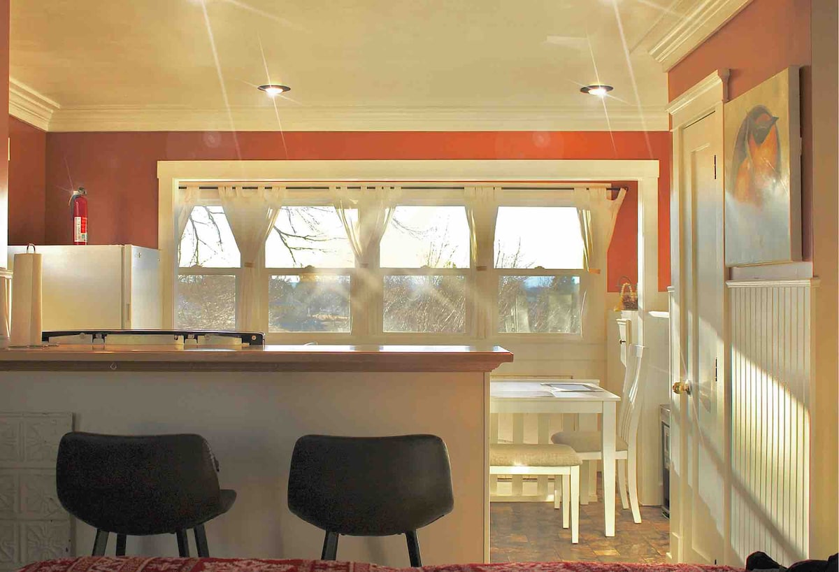 A nossa bela casita única de 1912 foi totalmente renovada, mas não perdeu o seu charme vintage. Somos duas artistas (Blanca e Paula) que enchemos a nossa casita recentemente restaurada com móveis reaproveitados, arte reciclada "principalmente feita por nós", mas também com comodidades modernas. A nossa casita colorida é definitivamente atraente da cerca de piquete de esqui para o nosso jardim de bolas de bowling. A nossa casita é mais do que uma noite de estadia, é uma experiência artística única. A nossa esperança é que saia daqui inspirada .