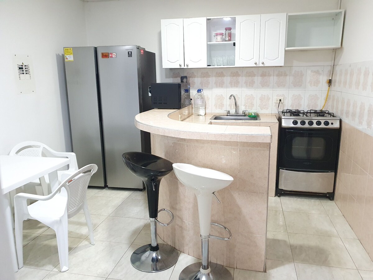 Enjoy a cozy family apartment, ideal for families, couples, or business travelers seeking comfort and relaxation. Experience a unique stay near the attractions of southern Huila. Kitchen, dining area, living room with TV and sofa bed, master bedroom with TV, washer/dryer, and Wi-Fi. Swimming pool, gym, and children's play area. 45 min San Agustín Archaeological Park 20 min Contador Airport 15 min Bus Terminal 10 min Downtown Pitalito 5 min Gran Plaza San Antonio Shopping Center