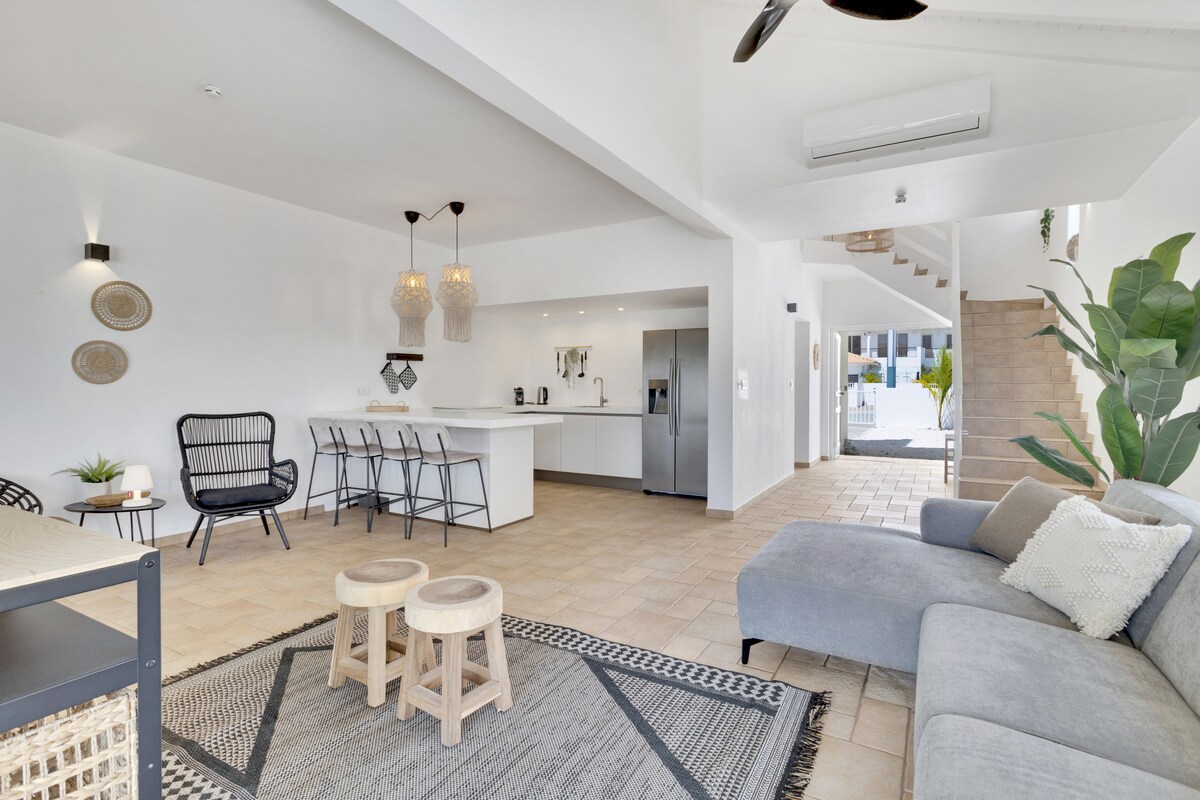 Esta moradia com jardim, localizada no centro (a 200 metros da Bachelors Beach) e única, é completamente nova e elegantemente decorada. O arrendamento começa em janeiro de 2026. A Garden Villa está localizada no jardim tropical do Pure Bonaire Boutique Hotel, ao lado dos apartamentos e estúdios, junto à piscina. O espaçoso terraço no telhado com cozinha exterior e churrasqueira oferece belas vistas para o mar e no piso de baixo há um terraço encantador. Adequado para 2 adultos (e possivelmente 2 crianças a partir dos 12 anos).