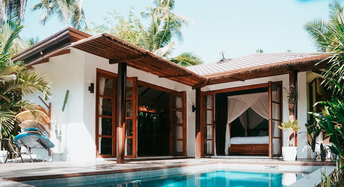 Casita Blanca. Your very own private tropical home. Inspired by our travels, the villa is influenced by Santorini architecture, Mexican & Moroccan Decor with an island twist. STARLINK WIFI. Relax around your private pool looking out over the ocean. Thoughtfully designed to create a comfortable and homely space to sit back after a day of exploring the island. Tucked away from the hustle and bustle of General Luna but just a few minutes ride to the islands best restaurants and surfing spots.