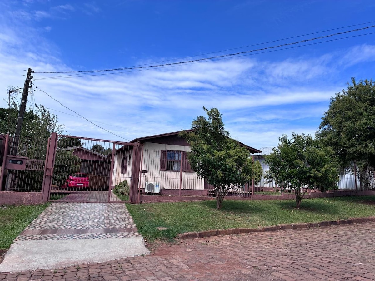 Casa com 2 dormitórios | Ar-condicionado em ambos + Wi-Fi 2 dormitórios com cama de casal e ar-condicionado 2 colchões extras Banheiro com chuveiro quente e toalhas Cozinha externa coberta, equipada com todos os eletrodomésticos e churrasqueira Proprietário mora em casa separada no mesmo pátio Garagem para até 3 carros Para mais de 2 hospedes o valor tem reajuste Próxima ao centro, farmácia e mercado. Check-in e check-out 15h (pode ser combinado )