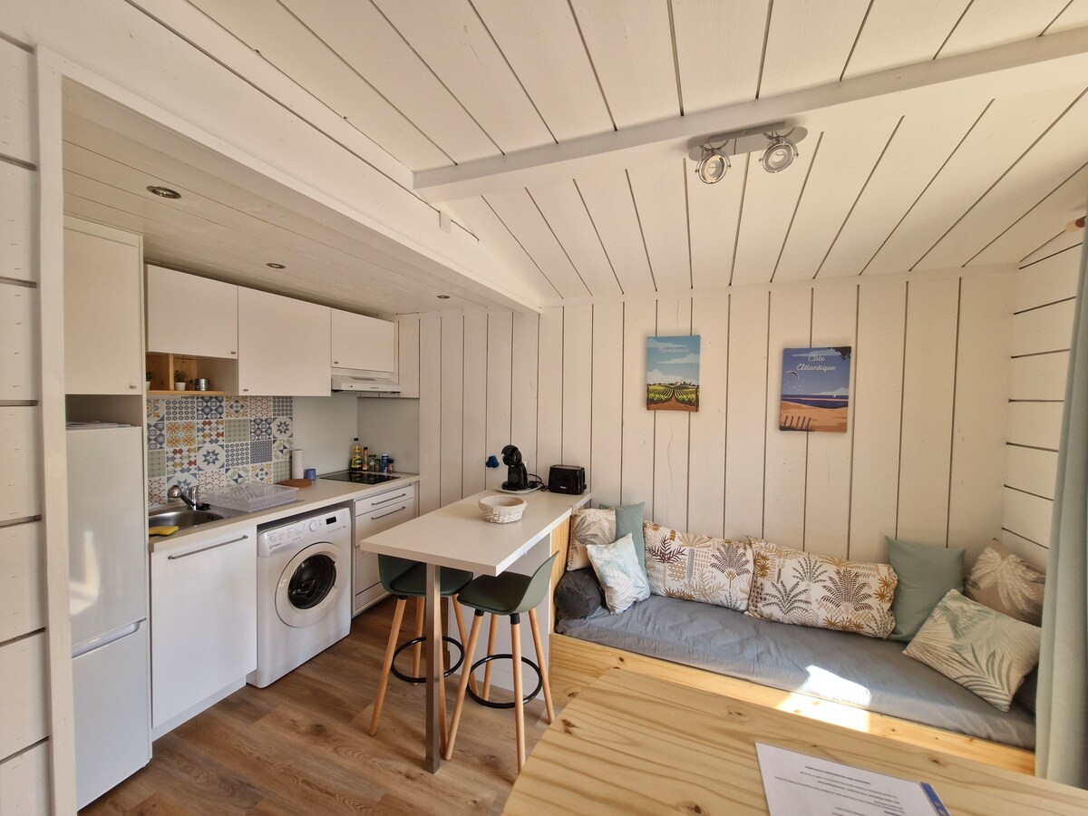 Chalé de 28 m² com certificado de duas estrelas, que inclui uma sala de cozinha/jantar de 22 m², quarto com cama de 140, casa de banho, bem como um mezanino de 12 m² com duas camas de 90 e um terraço de 20 m² que inclui uma mesa de jardim, espreguiçadeiras e uma churrasqueira. A piscina dos proprietários está em acesso livre, bem como um campo de petanca, uma mesa de ping-pong de exterior, um pórtico e uma churrasqueira.