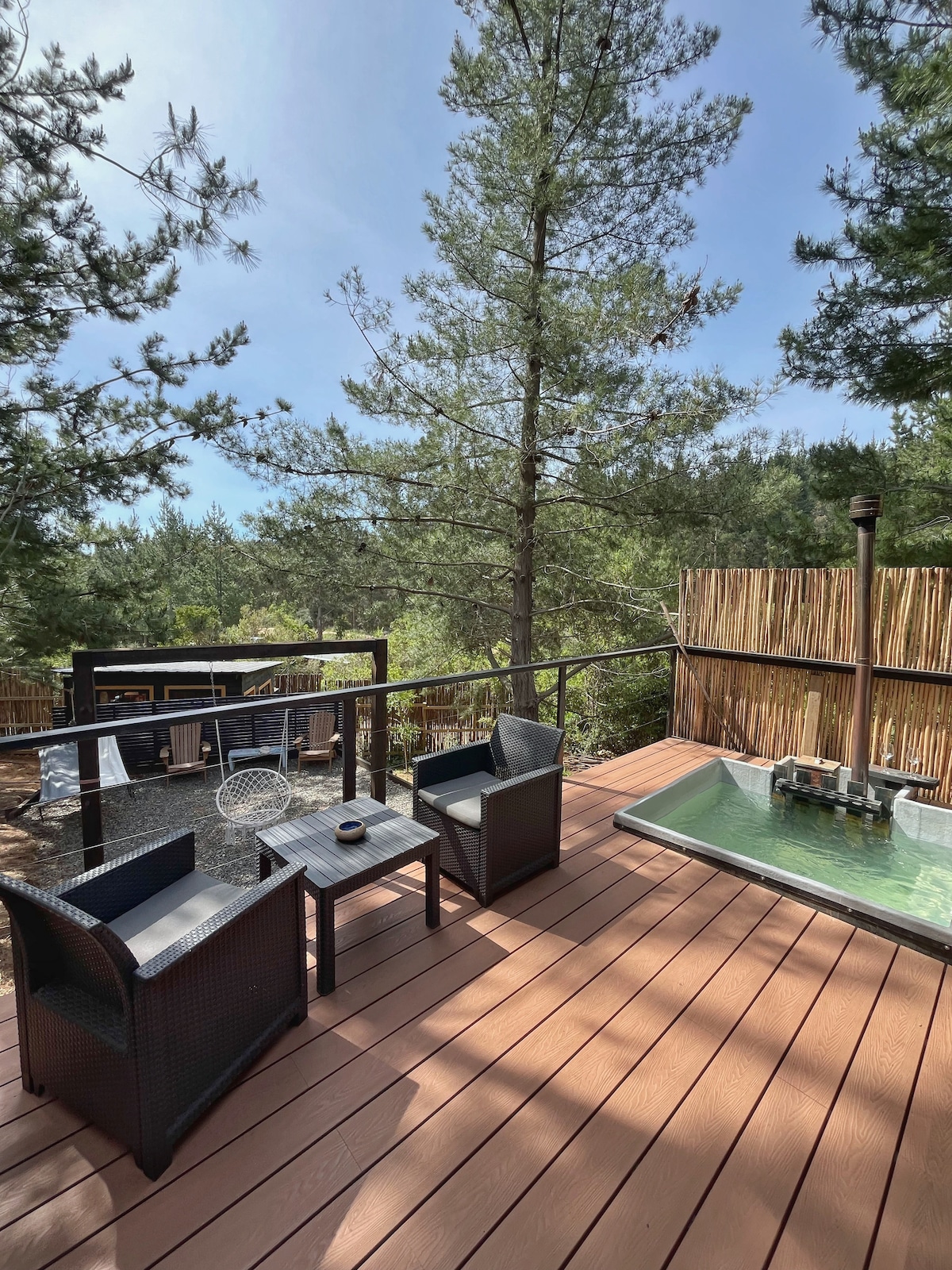 Noche de descanso y tinaja con vista al bosque.