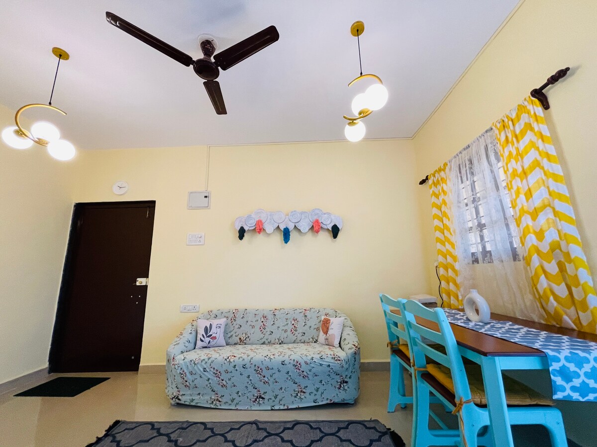 Elmo's World ◆ Um espaçoso apartamento com ar-condicionado mobiliado de 1 bhk a 700 mts da famosa praia intocada de Zalor Configuração ◆ ideal de trabalho remoto: Internet estável com energia de volta Caminhada ◆ curta até o ponto de café da manhã mais próximo, mercearia ou praia ◆ Cozinha bem equipada: fogão a gás de 4 bocas, purificador de água, máquina de lavar roupa, geladeira Distância da minha acomodação: ◆Estação - 10km Rodoviária ◆Madgaon - 11 km Aeroporto de◆ Dabolim - 31 km Aeroporto ◆MOPA - 72 km Bem-vindo à vida de Susegaad! Mog Asun...